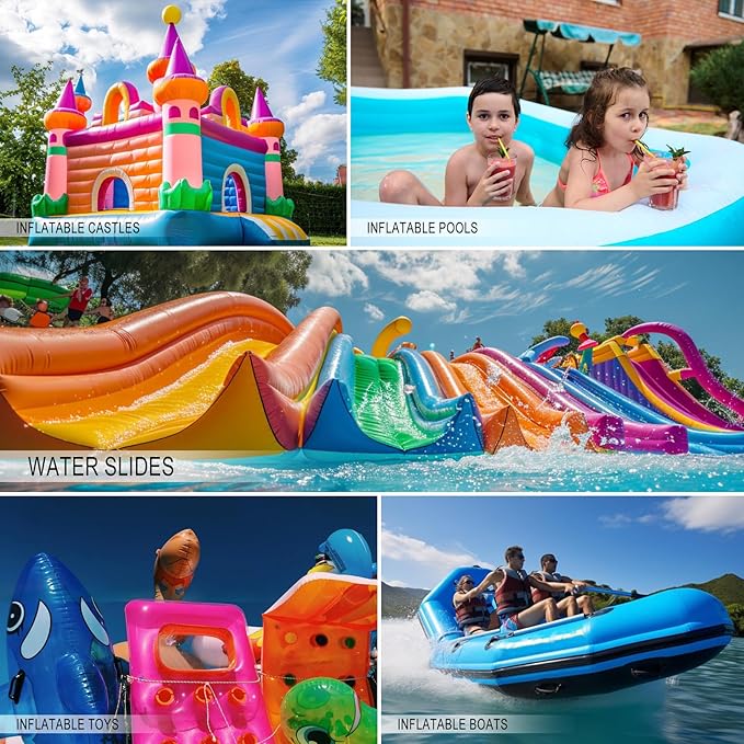 - WIDE APPLICATIONS: Suitable for repairing small slits or fix a leak on swimming pool, bounce house, inflatable boat, inflatable raft, air mattresses, air bed, above ground pool, pool tube, pool float, inflatable ride-ons, inflatable sofa, waterproof bag, balloons, inflatable toys, and other inflatables, and can also be used to repair tents, canvas, rainwear, Umbrella and vinyl furniture. bring you much convenience.
