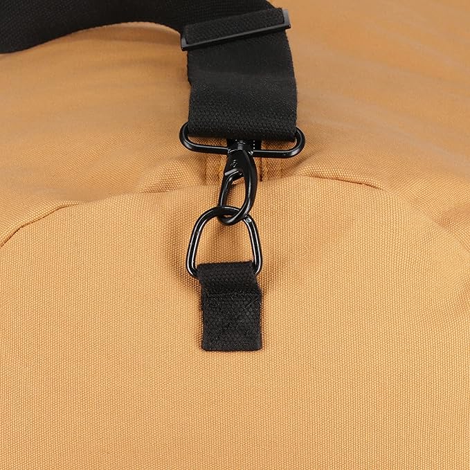 - REINFORCED COTTON WEB HANDLES: Soft & durable cotton web carry handles at each end of the duffle bag and one on the side with reinforced D-ring strap attachments for easy lifting and carrying heavy items. A comfortable, detachable and adjustable padded shoulder strap with quick-release buckles is included with this duffle bag for convenience and to carry the weekend tactical duffle bag across your body or over your shoulder