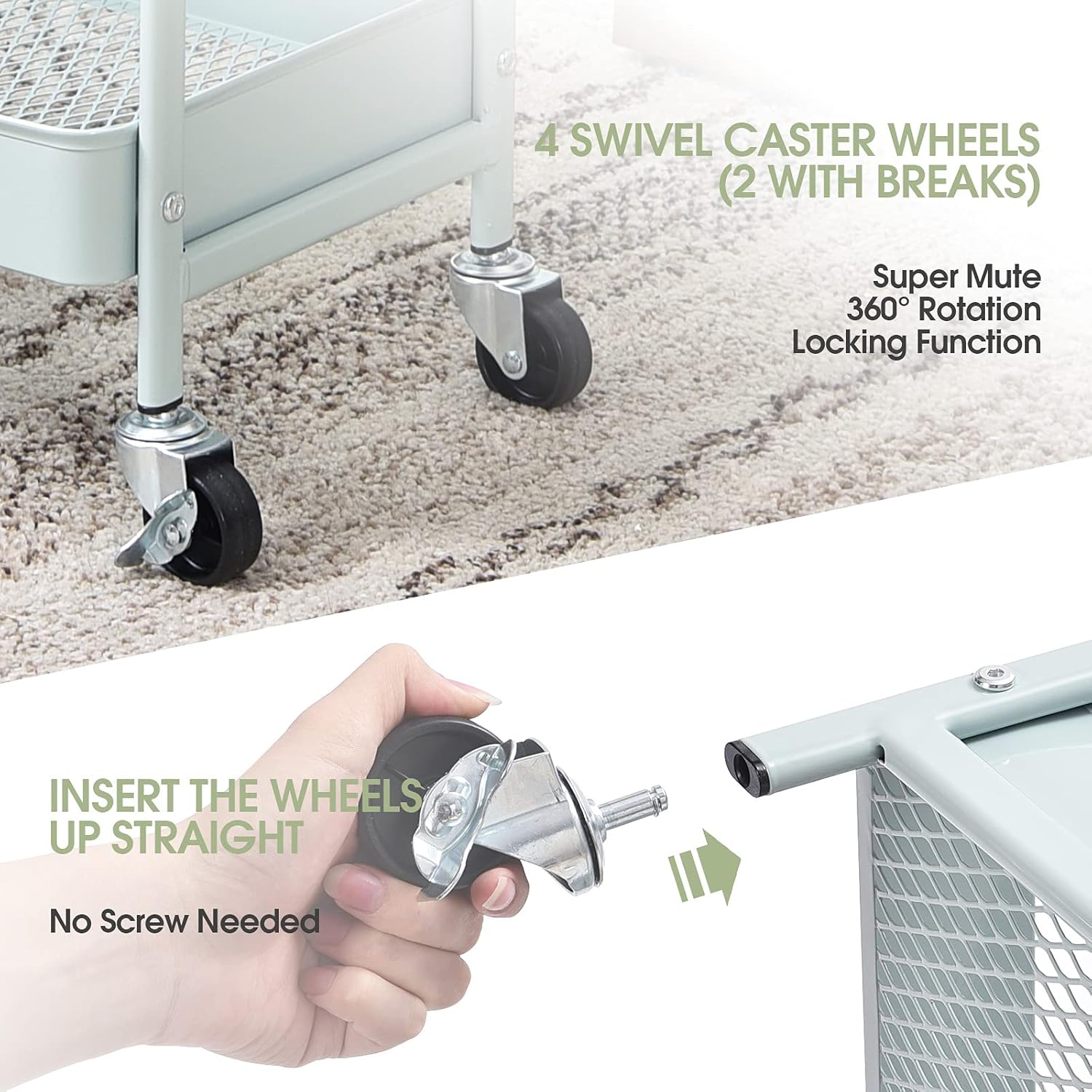 - 💦EXPLORE THE WHEELS for ROLLING | There are 4 heavy duty casters, it keeps silent when moving, and can be rotated 360°. 2 lockable wheels metal brakes to allow a stable stop even on a slope. The utility "U" shape handle is convenient to push the rolling cart with wheels to any place or fixed position.