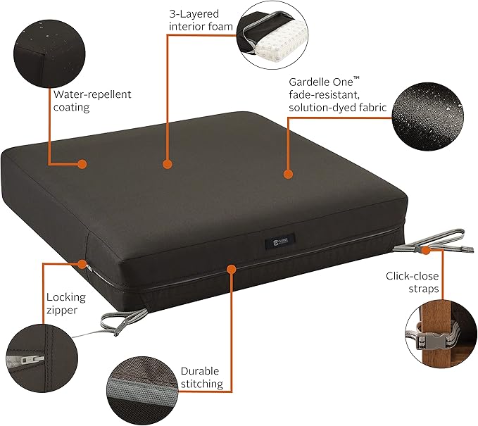 Classic Accessories Ravenna Water-Resistant Patio Lounge Chair/Loveseat Cushion, 25 x 27 x 5 Inch, Espresso