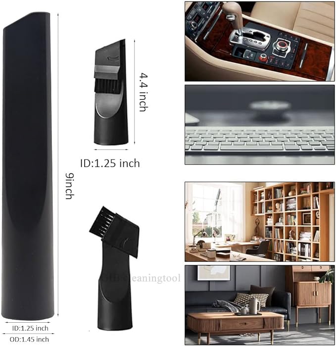 - Vacuum attachments are compatible with Most Vaccum (Not All ) with standard 1 1/4 inch (32mm) and 1 3/8inch (35mm) inner diameter, (May not fit for Bissell,not for Shark, not for Hoover, not for Dirt Devil, not for Craftsman.), The attachments include 32 mm (1 1/4") to 35 mm(1 3/8") vacuum attachment adapter, 1 1/4" (1.25") horse hair vacuum attachment, 1 1/4" crevice tool, 1 1/4" upholstery tool attachment, 1 1/4" utility nozzle with removable plastic brush, 1 1/4" brush & nozzle combination tool.