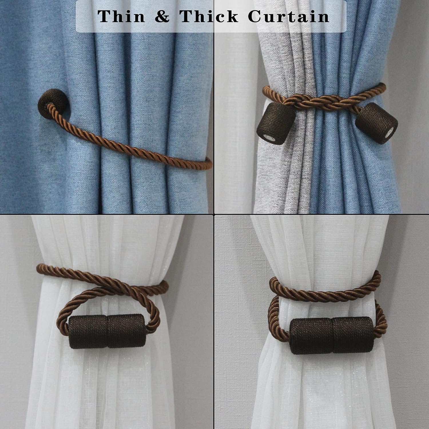 - Our products do not need to use hooks, Will not damage your walls. when you are not using tie backs for curtains, you can attach it to any position of the curtain without worrying that magnetic curtain holdbacks will be lost for the next use. Attractive modern look of these rope curtain tiebacks, perfectly match with your bedroom, living room, office and so on, and meet daily use. Best as a gift or for self use.