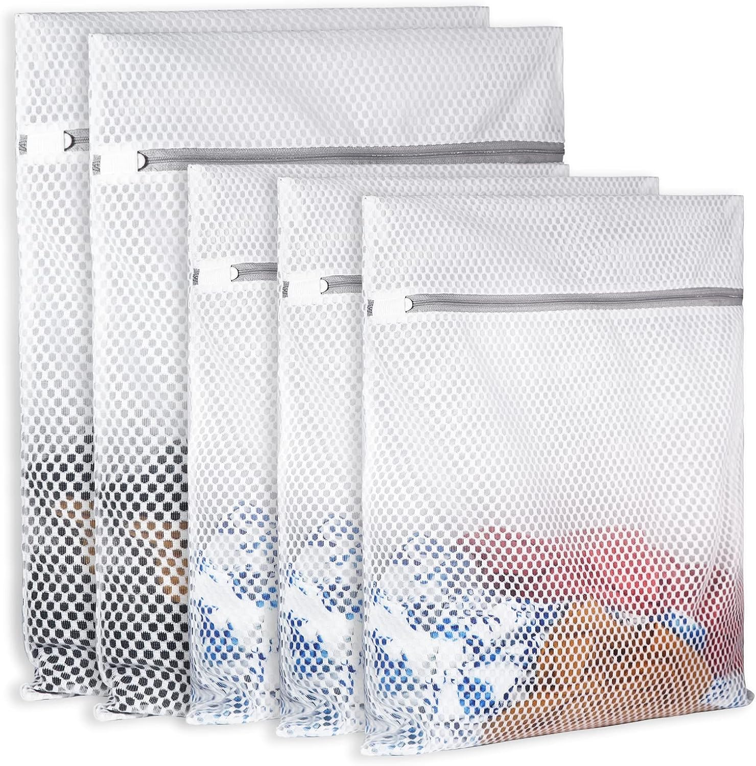 - 5Pcs Set:2Large, 3Medium,and extra strong: ,our 16" x 20" (40 x 50 cm), 12" x 16" (30 x 40 cm) laundry bag made of a high-quality durable material (125g honey comb mesh) for a long-lasting usage.