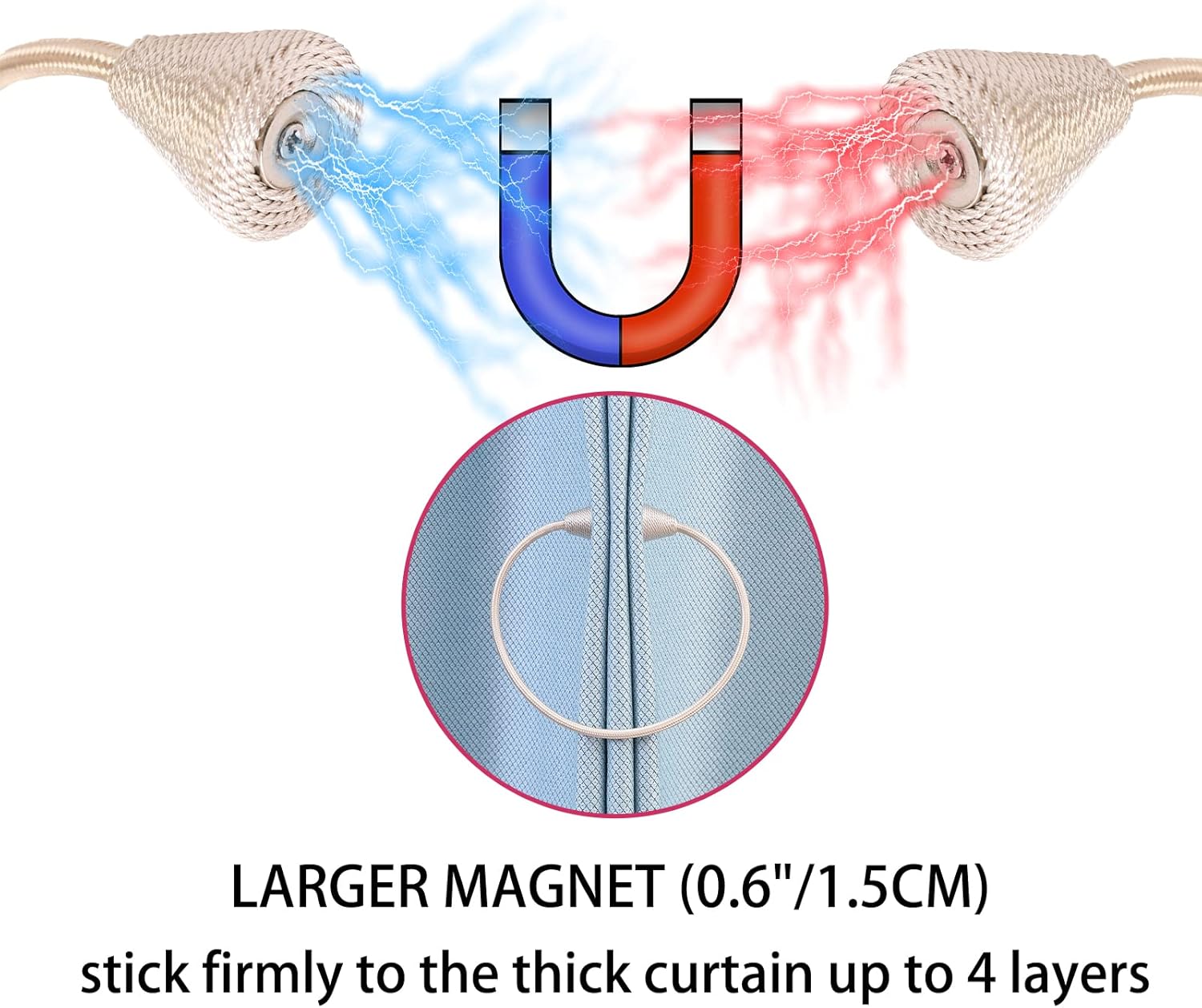 2 PCS Magnetic Curtain Tiebacks, European Style Convenient Drape Tie Backs Holdbacks for Thin or Thick Home & Office Window Draperies, No Tools Required(Beige)