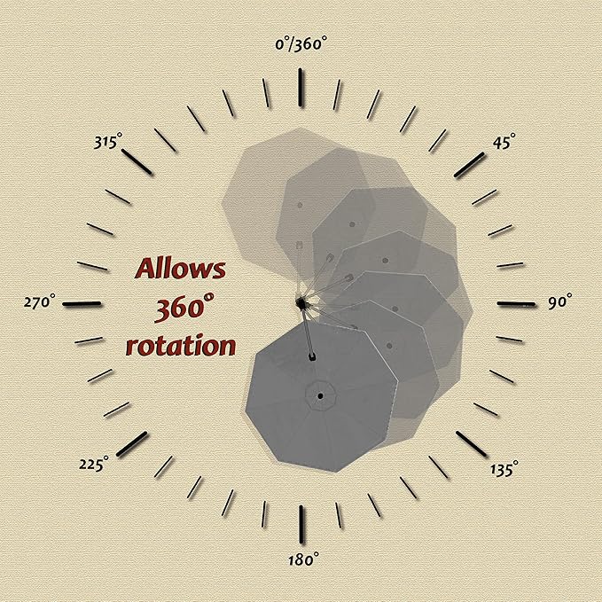 - The crank system of this cantilever umbrella makes it easy to raise and lower the canopy, the unique handle design also makes tilting the umbrella effortless, foot pedal allows for complete 360 degree rotation