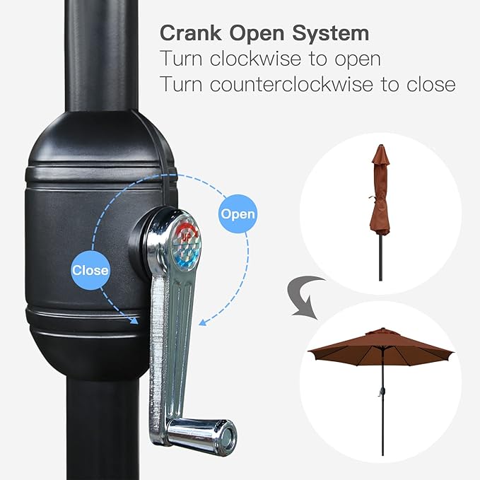 - Easy crank open function with push button tilt, keeping cool and comfortable form the hot and hush sun.