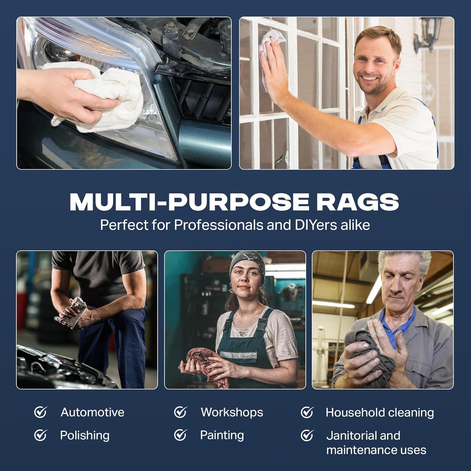 - Ideal for Pros & DIYers Alike: Whether you're detailing a car, painting furniture, cleaning up in a workshop, or working on a renovation, these shop rags are trusted by mechanics, painters, woodworkers, and home users. Their soft knit texture makes them perfect rags for cleaning both tough surfaces and more delicate finishes.`