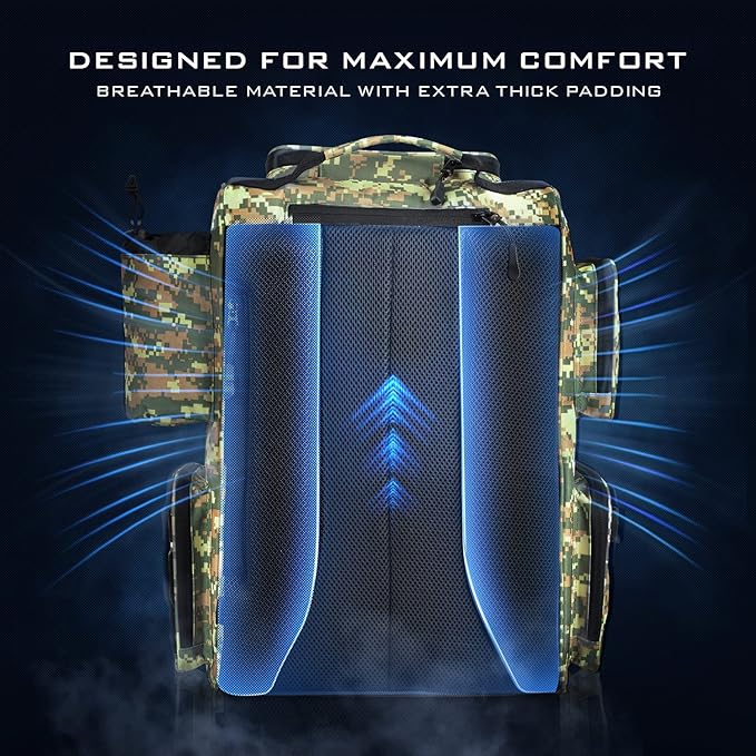 - Cushioned Back Support: The fishing tackle backpack is cushioned with breathable soft padding for superior back support.