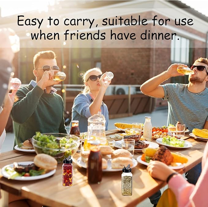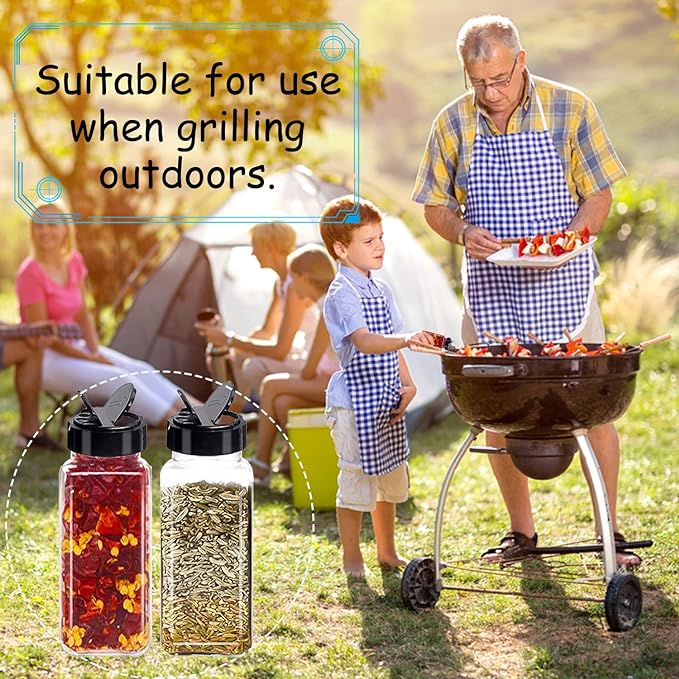 - Seasoning jars are made of high-quality plastic,lightweight and not easily broken,more durable than glass spice jars.The transparent bottle allows you to see the inside clearly and easily identify what it is