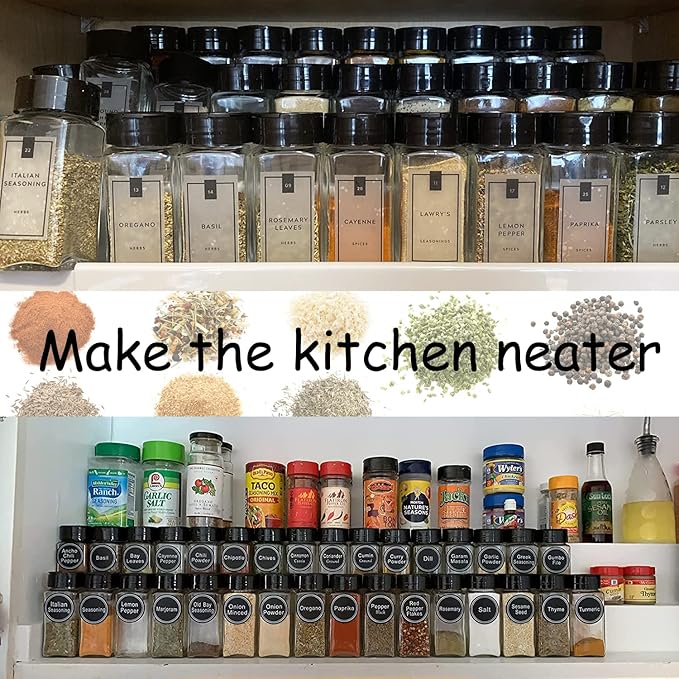 - Each clear spice jars measures 1.5 x 1.5 x 4.1 inch/3.7 x 3.7 x 10.5 cm.Capacity is 3.5 oz/100 ml,suitable for any spice storage