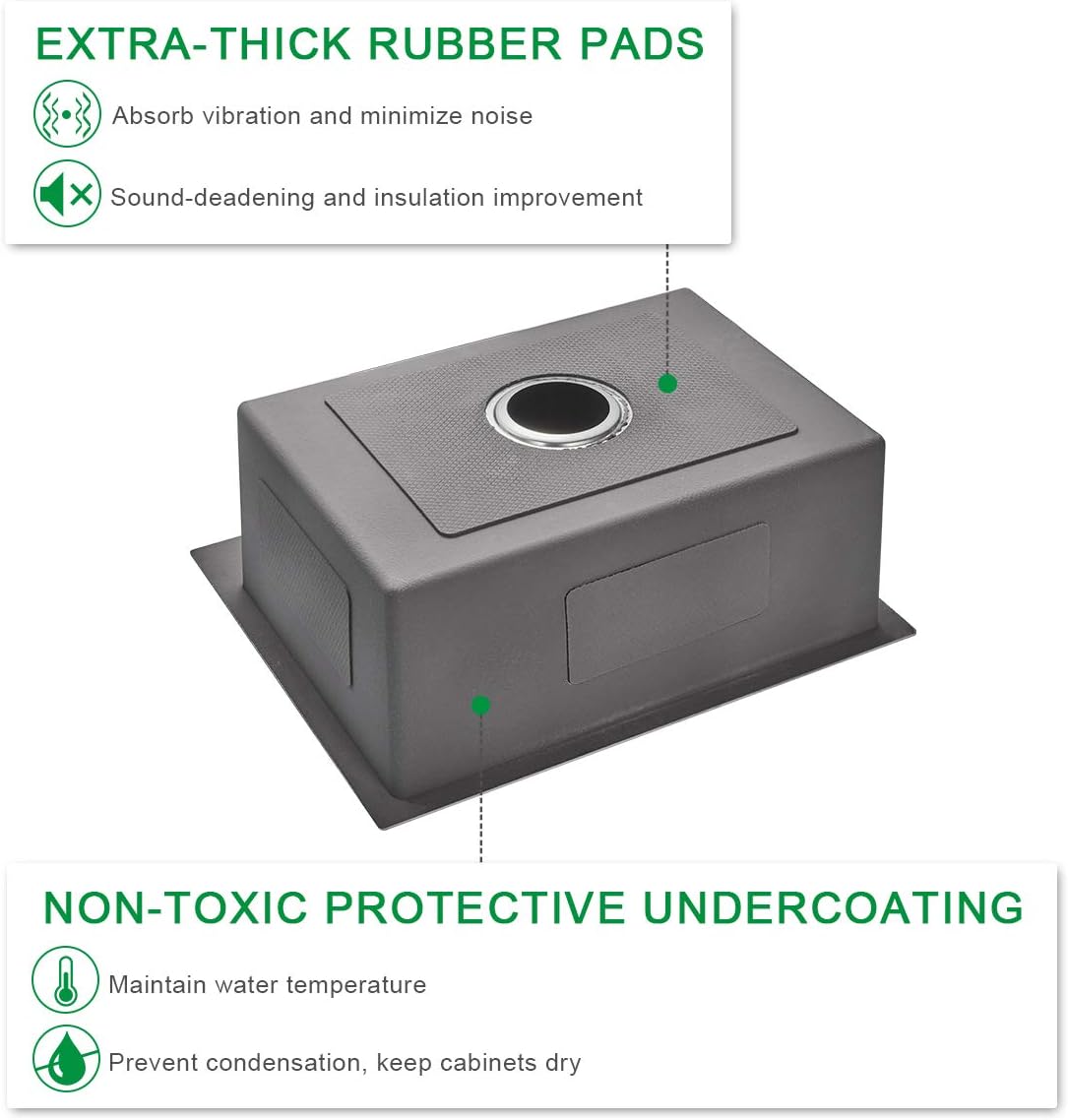 - 【Quiet & Condensation-Resistant】The stainless steel sink features sound-absorption undercoating and noise-reducing rubber pads to create the quietest sink experience. Reduces water noise and vibration while preventing condensation buildup for drier cabinets