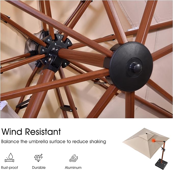 - Balanced wind design: Featuring a double-top design, the umbrella allows for ventilation underneath and can control wind direction to stabilize the canopy