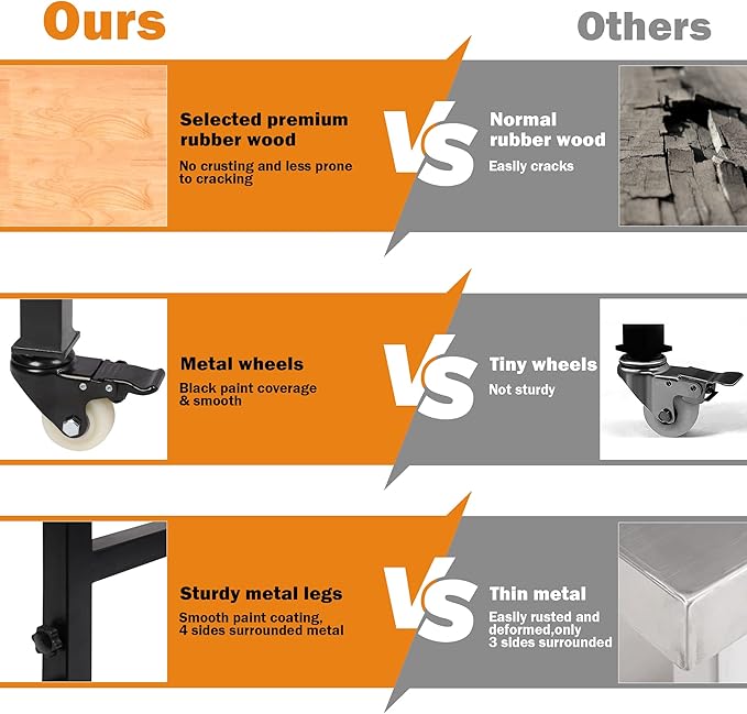 - 【UPGRADE METAL WHEELS】Unique black metal wheels with brake, Get your workstation anywhere. The smooth giant TPR wheels make it easy to move the table.Responsive brakes just only need to be pressed lightly.