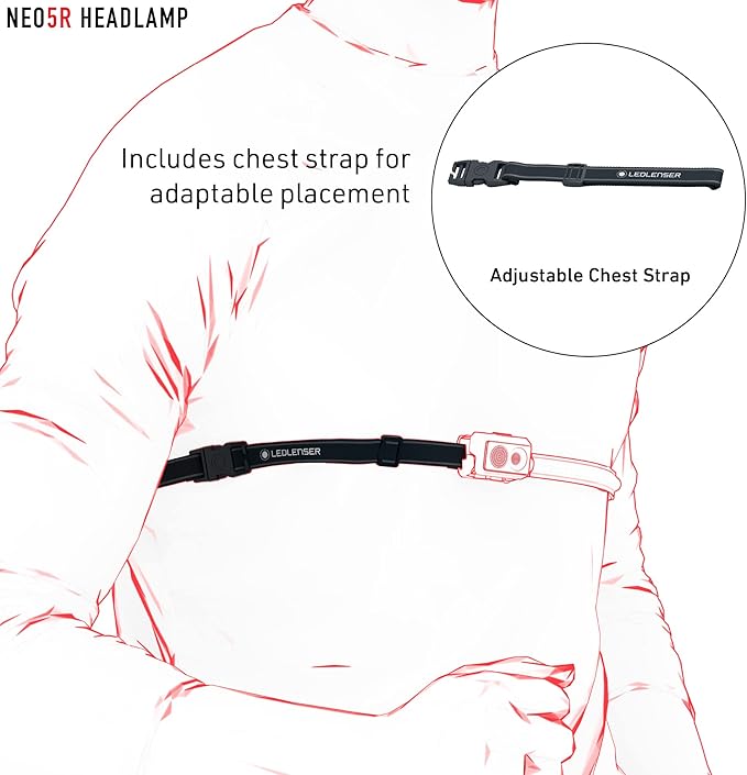 Ledlenser NEO5R LED headlamp Jogging, 600 lumens, Running lamp, Rechargeable, red Rear Light, Reflective Headband, Chest Strap, lamp Head swivelling (White)