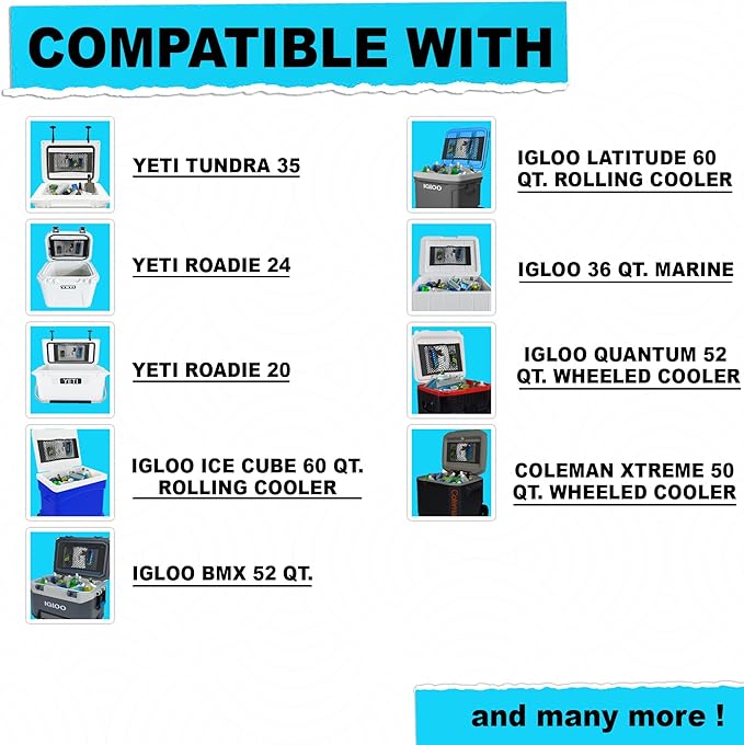 - ✅ Compatibility -- It can be stretched to fit many different coolers .Best Fit for Igloo BMX 52, Yeti Tundra 35, Yeti Roadie 24, Yeti Roadie 20, Igloo Latitude, RTIC 20, Iglo Latitude 60, Iglo Quantum 52 and many more. Check Dimensions before ordering