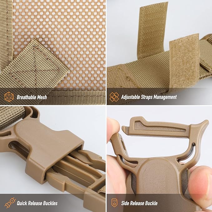 - EASY TO ATTACH: Tactical Suspender adopt the snap bar buckle and just run it through the top D-ring webbing loop, and the rear Molle webbing of your tactical admin pouch/chest bag, then deadly snap into place or side-release to take off, easy to fits 1"/25mm webbing and standard Molle webbing.