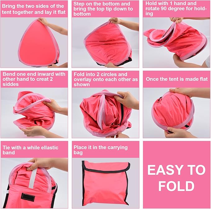 - 🌴PACKING CONTENTS🌴 -- Comes with a pet tent in rose red with a length of 31.51 in/80 cm, width of 19.69 in/50 cm and height of 21.65 in/55 cm, and a tent storage bag with side-length of 9.84 in/25 cm.