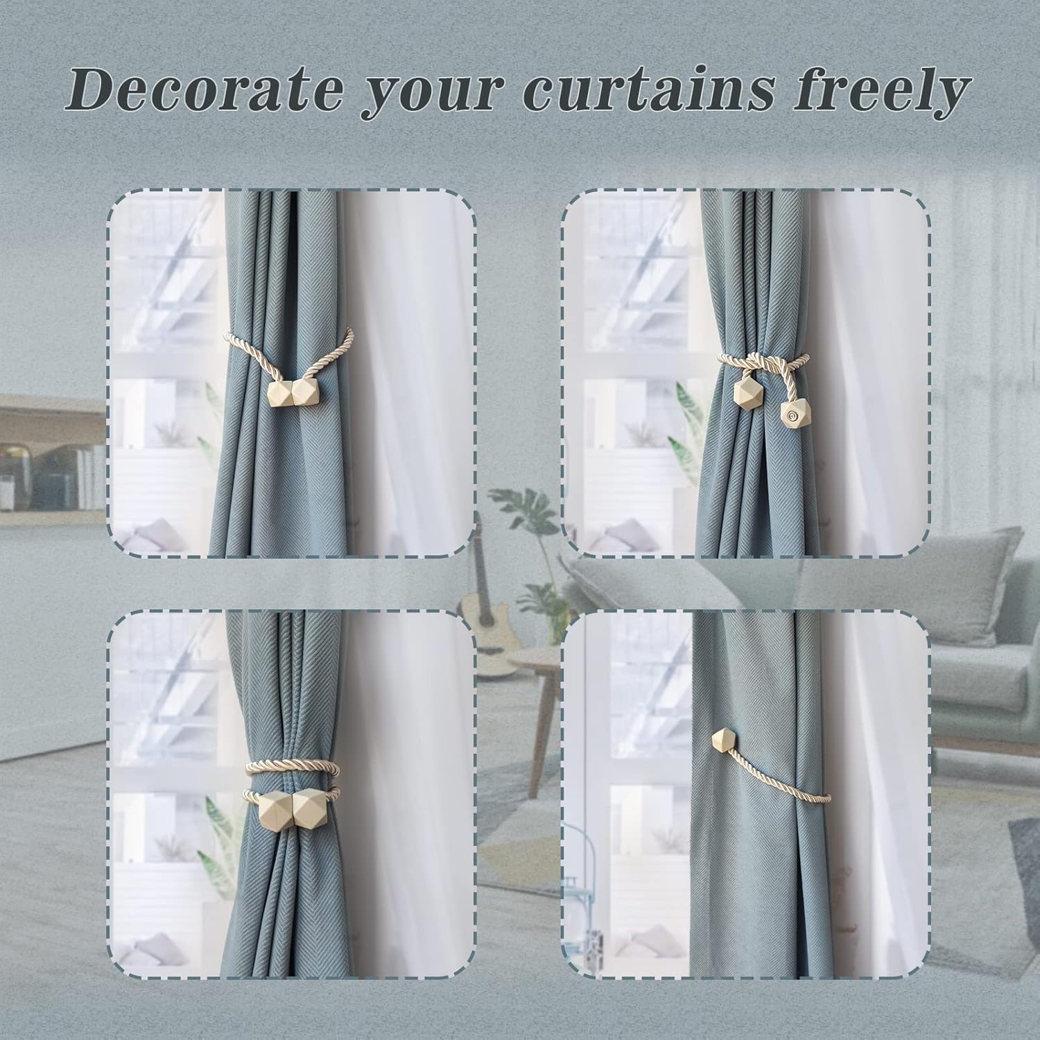 - π[Upgrade Powerful Magnetic] Our magnetic curtain tiebacks magnets use high-end new imported nickel-plated magnets, with strong corrosion resistance and durability, more magnetic than ordinary magnetic curtain tiebacks, and do not rust and not lose color. The rope of curtain tie adopts upgrade thickened solid polyester yarn, which is not only durable, but also not easy to wear or pilling.