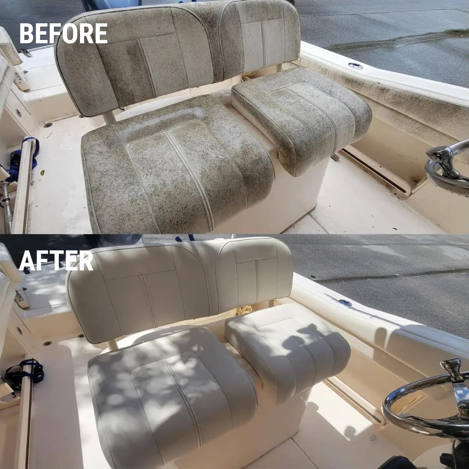 - VERSATILE APPLICATION: Ideal for use on boat interiors, vinyl cushions, fenders, life jackets, sails, etc. Make your vinyl boat seats, covers, cabin, deck, bumpers and more squeaky clean! Just donโt use on fabric or textile.