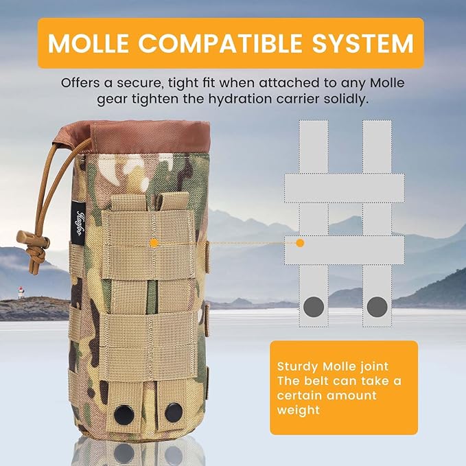 - 【 UNIVERSAL FITS 】 - Perfect size of 3.55"(D)x9.45"(H), this tactical water bottle pouch bag fits most standard size water bottles (0.5L Smartwater), one size fits most.