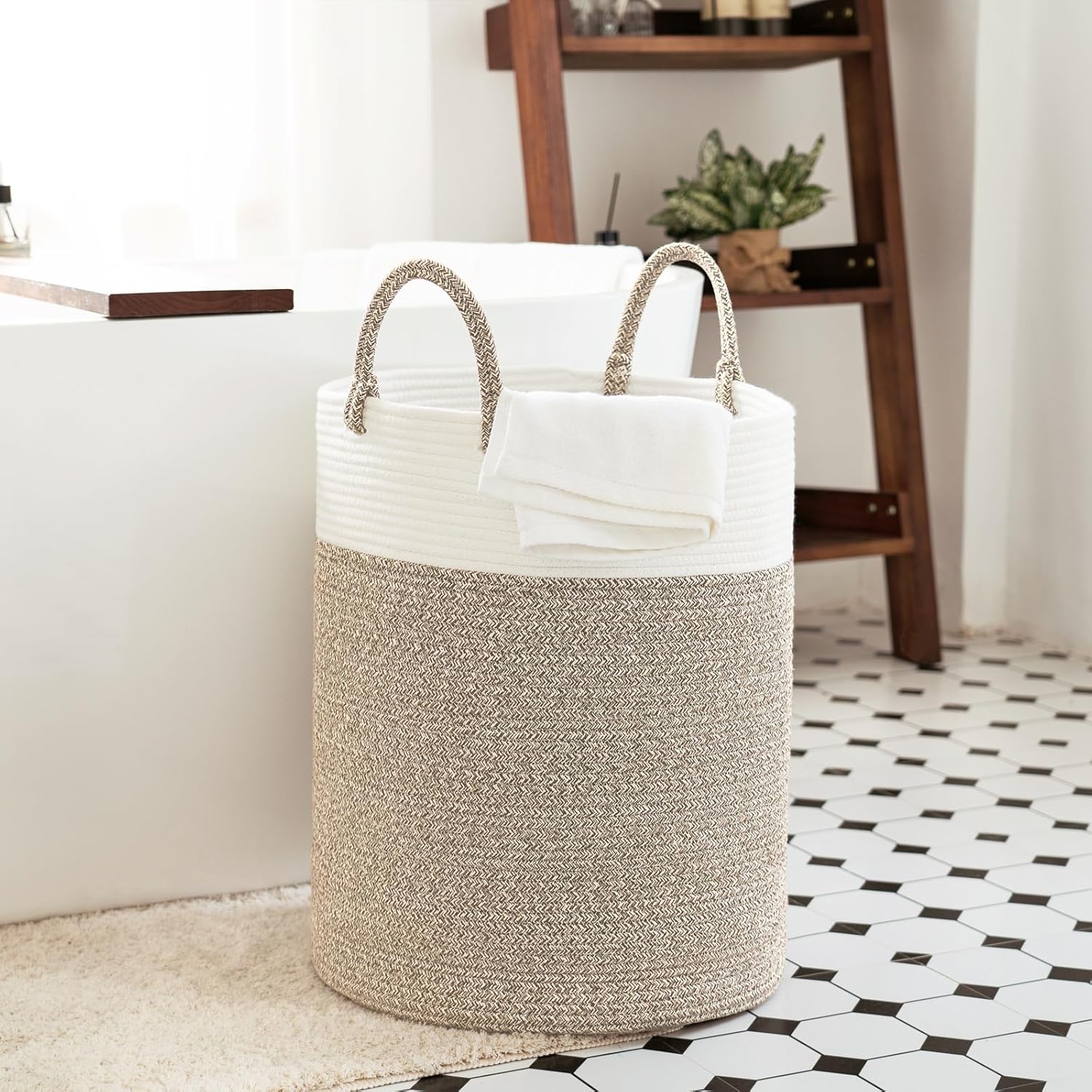 INDRESSME Tall Wicker Laundry Basket, Large Woven Clothes Hamper for Bedroom, Bathroom, Living room, Tall Nursery Hamper for Blankets, Toys, 16 x 20 inches White & Brown