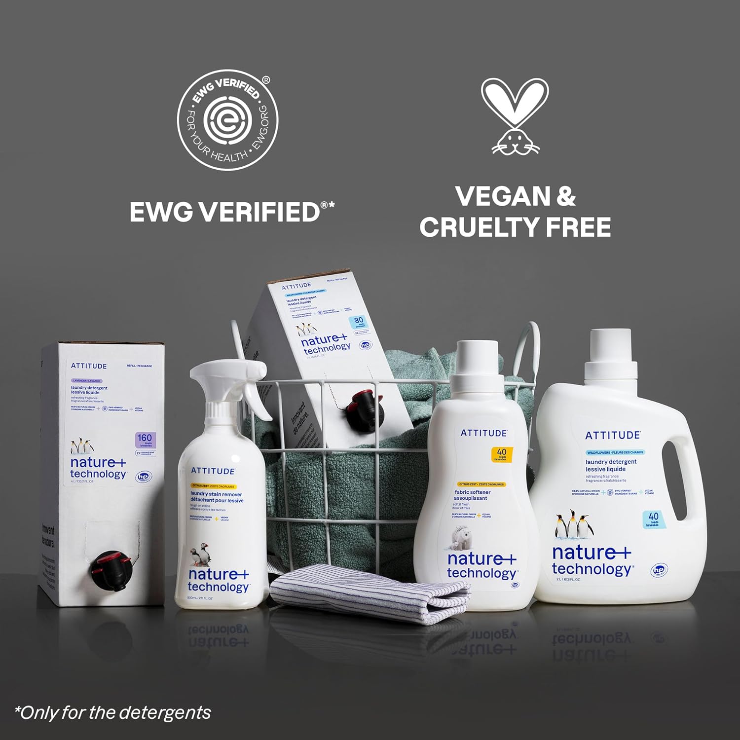 ATTITUDE Liquid Laundry Detergent Refill, EWG Verified, HE Compatible, Plant-Based & Vegan, Natural Laundry Soap, Summer Berries Scent, 160 Loads, 135.26 Fl Oz