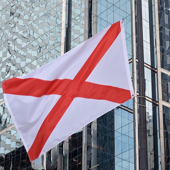 Alabama State Flag 6x10 Ft, Deluxe Embroidered Heavy Duty Nylon Durable AL Outside Flags, Indoor/Outdoor, Sewn Stripes and Brass Grommets