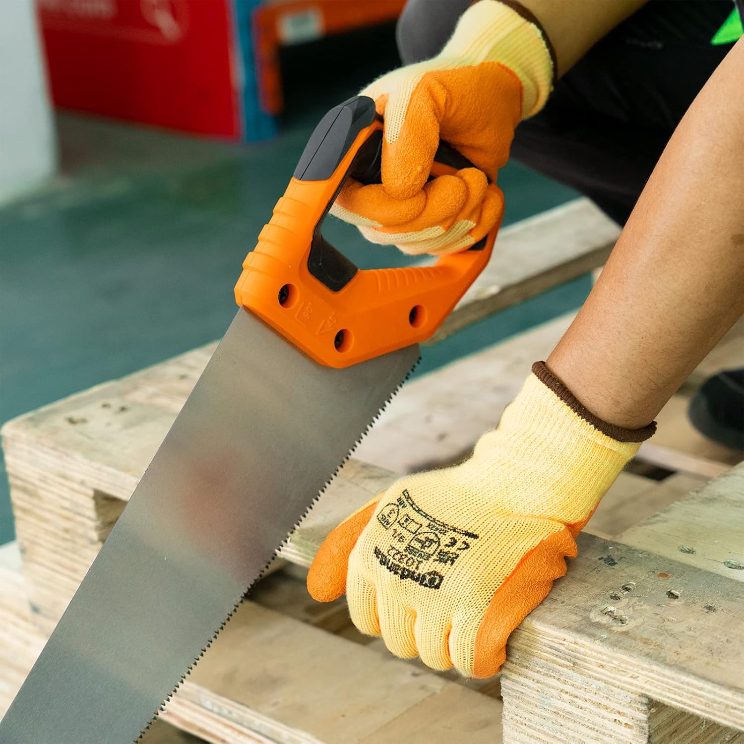 - 【LATEX COATED】: ANDANDA safety work gloves with latex coated palm and fingertips, have excellent abrasion resistance, and a strong grip with high dexterity in dry and slightly wet/oily conditions.