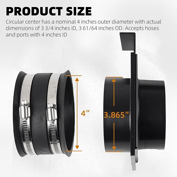 - FOR 4-INCH HOSES, OUTLETS, AND PORTS - Circular center has a nominal 4 inches outer diameter with actual dimensions of 3 3/4 inches ID, 3 61/64 inches OD. Accepts hoses and ports with 4 inches ID