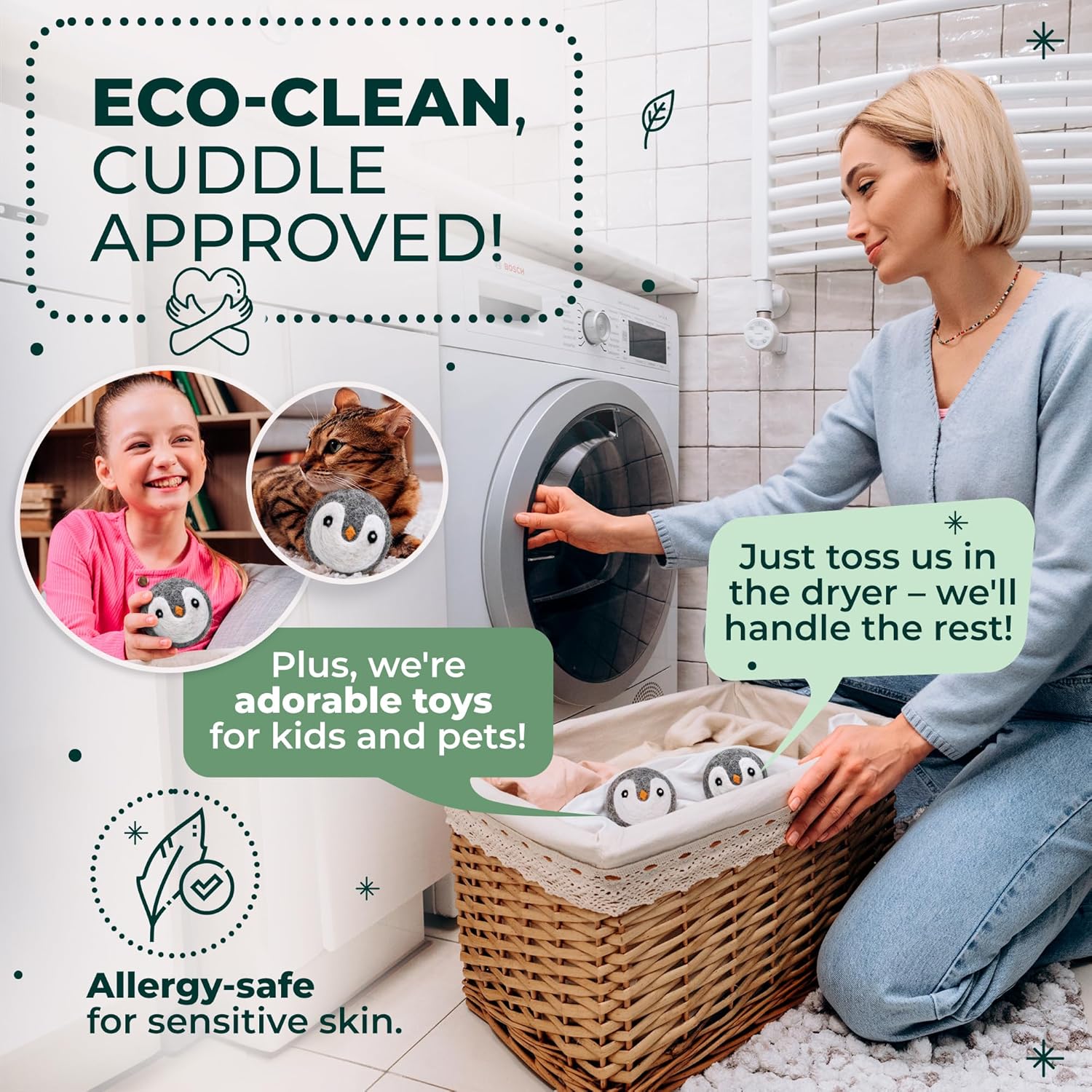 • PERFECT FOR PETS AND FAMILIES: Allergy-safe and chemical-free for delicate baby clothes, sensitive skin, and even safe for pet snuggles.