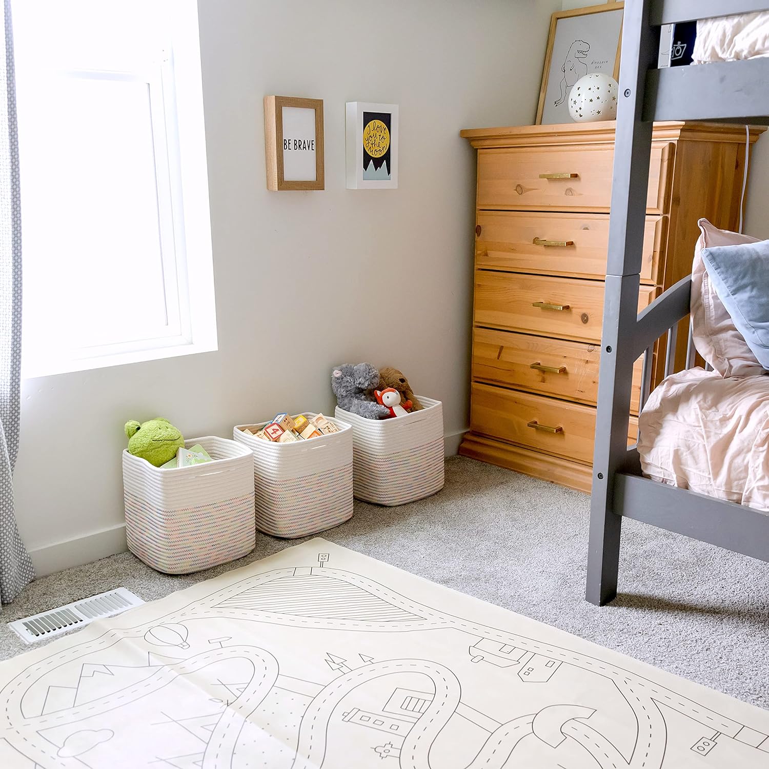- Safe, Natural Cotton Storage Basket: Crafted from the highest quality material in the market, our toy bins are oh-so-sturdy and ready to take on little humans with a knack for nom-ing. Theyâre 100% safe, so you can rest easy if teething toddlers take a nibble.