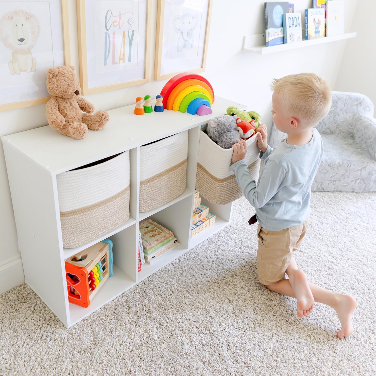 - Safe, Natural Cotton Storage Basket: Crafted from the highest quality material in the market, our toy bins are oh-so-sturdy and ready to take on little humans with a knack for nom-ing. Theyâre 100% safe, so you can rest easy if teething toddlers take a nibble.