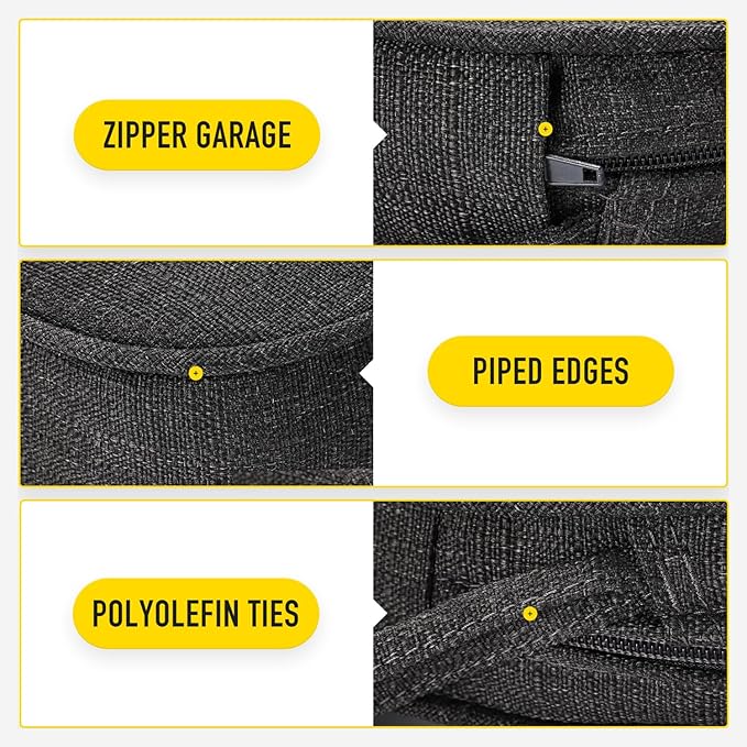 - 【Invisible Zipper Garage | Removable Cover with Ties】Zippers lock to keep a tight closure, stored in protective garages to prevent scratching your patio furniture when closed and offer a seamless look. Removable cover with non slip ties, customizable fit to keep your cushion where you want it.