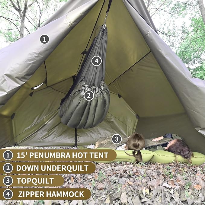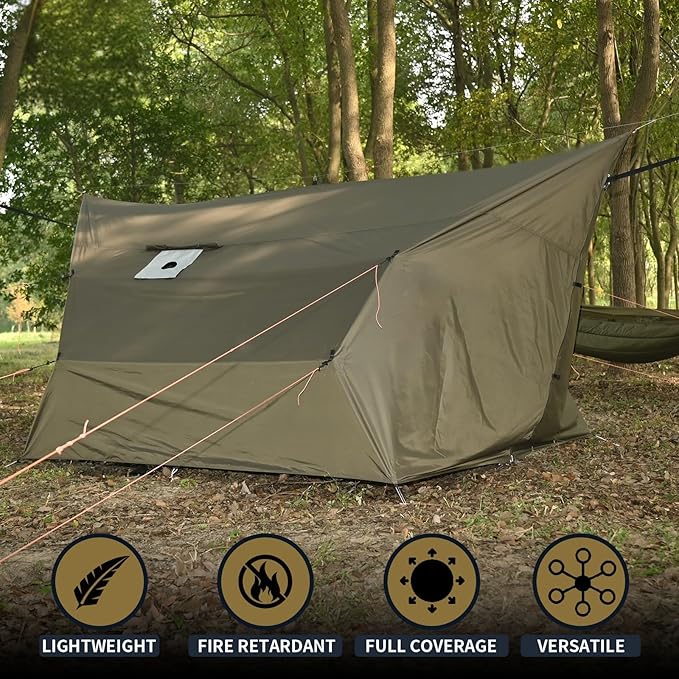 Onewind Penumbra Hot Tent, 14ft Camping Hammock Tarp for 4-Season, Waterpoof and Flame Retardant Hammock Rain Fly with Stove Jack for Winter, Outdoor Camping, OD Green