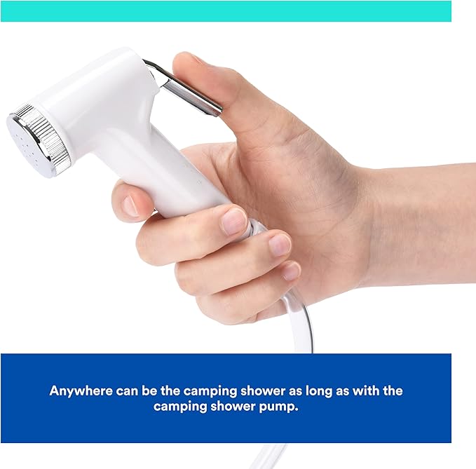 - Portable Camping Shower Kit Bag: The shower camper is designed to be easy to carry and comes with a drawstring storage bag to pack the nozzle, hose, and foot pump neatly into when not in use. This makes it an ideal choice for activities such as camping, hiking, backpacking, road trips, and swimming