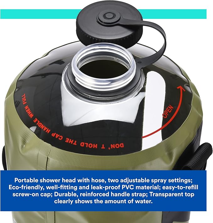 - On/off Switch On The Shower Nozzle: It is easy to assemble and disassemble, including the water hose, spray nozzle, and pressure air pump. It has a relaxed on/off switch that can be easily turned on by hand. To use, simply fill the shower bag with water, drop it on the ground, step on the pump, and enjoy a refreshing outdoor shower