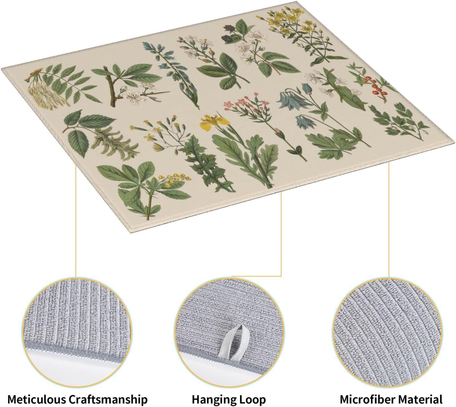 Vintage Color Plants Herbs Floral Microfiber Dish Drying Mat For Kitchen Countertop Absorbent Reversible Drainer Rack Pad 18 X 16 Inch