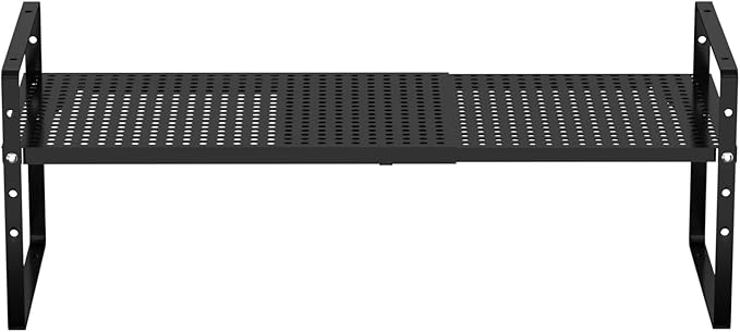 Redrubbit Expandable Cabinet Storage Shelf, Adjustable Height Steel Metal Kitchen Counter Organizers Shelves Spice Rack for Kitchen Pantry Bathroom Cupboard Desk Home Office, Black-1 Pack