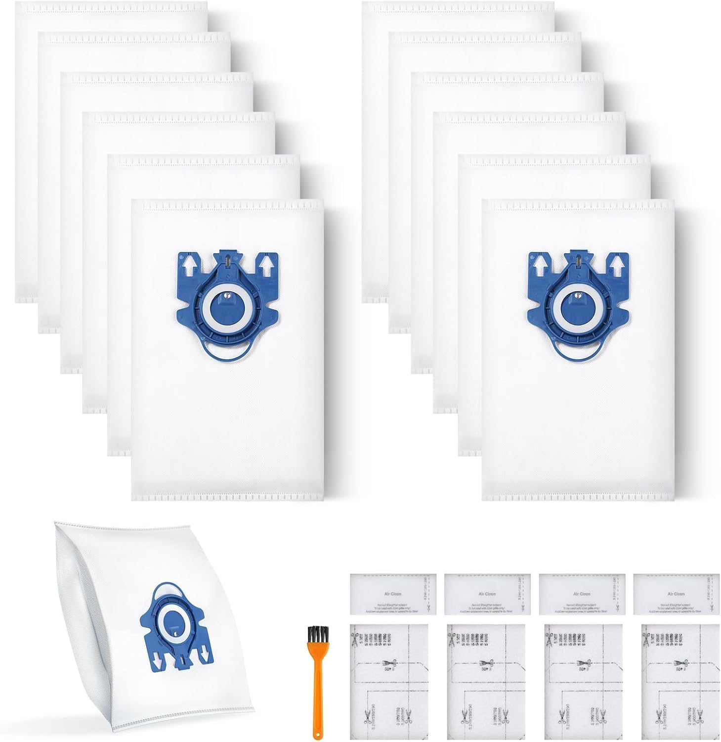 12 Pack 3D Dust Bags, Compatible with Miele GN Vacuum Bags, Replacement for Miele Classic C1 Complete C1, C2, C3, S400i S600 S2 S5 S8 Series, with 4 MP Filters, 4 AC Filters