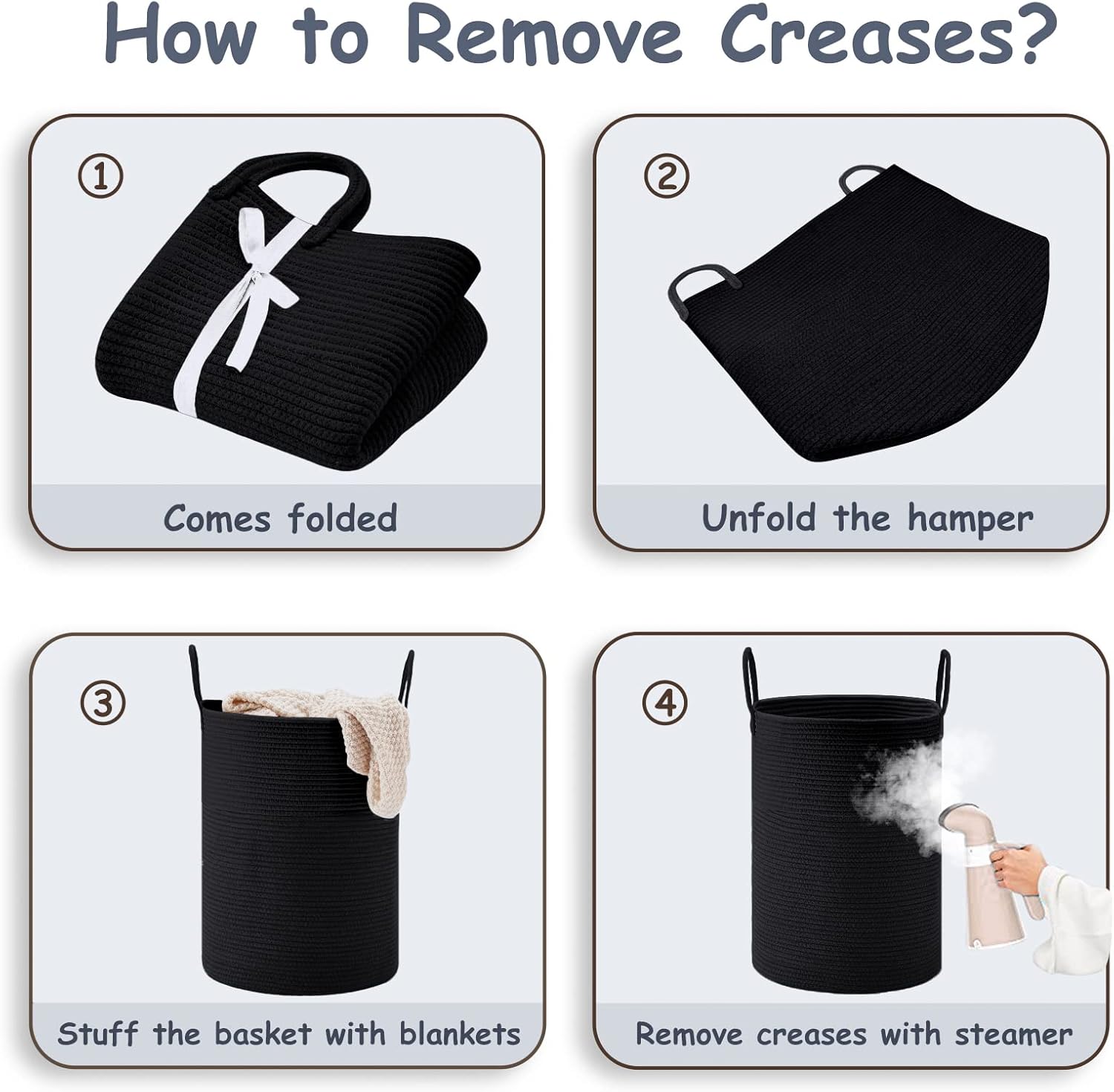 - ❤【Restore Elegant Shape】 To improve shipping efficiency, foldable woven rope hampers are packed compactly. You can put some blankets or small quilts in it and give it some time to regain its shape. Iron is a great idea to remove the creases.