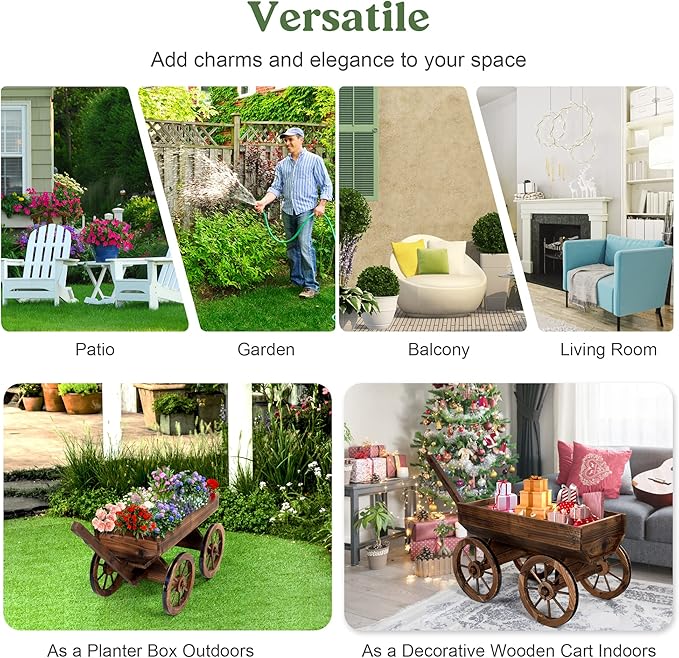 - 【Durable】: Made of high-quality cedar and burned-treated, this seeder cart has high weather resistance. Natural and sustainable materials perfectly match the style of your garden or courtyard, with iron-reinforced wheel hubs for long-term use.