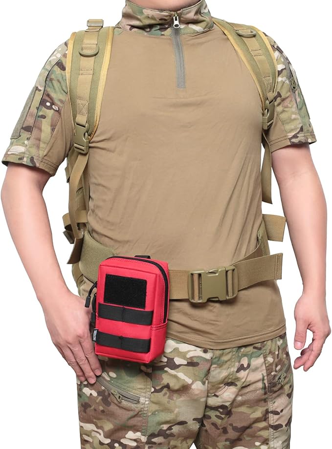 - The two vertical straps and the the metal snap on the back allow you to add the military pouch to combat vest, tactical backpack, or other tactical gears as an extra exterior pouch. Small bag is with large capacity and there is an internal pocket. This versatile pouch adds a lot of storage for small items that would have been buried in your main pack.