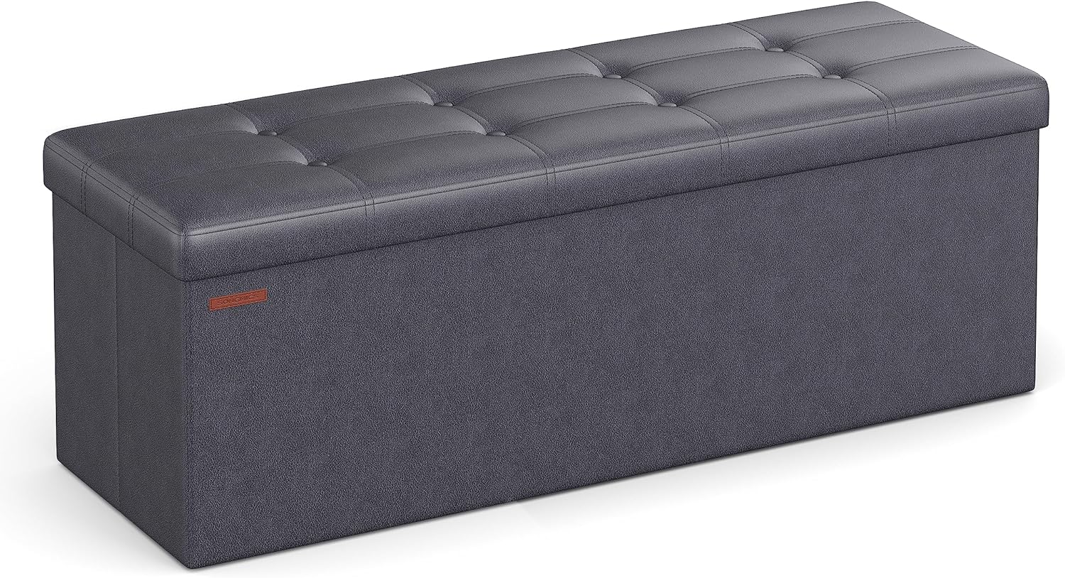SONGMICS Mazie Collection - 43 Inches Folding Storage Ottoman Bench, Ottoman with Storage, Foot Rest Stool, Load 660 lb, for Living Room, Synthetic Leather, Dark Gray ULSF070G01