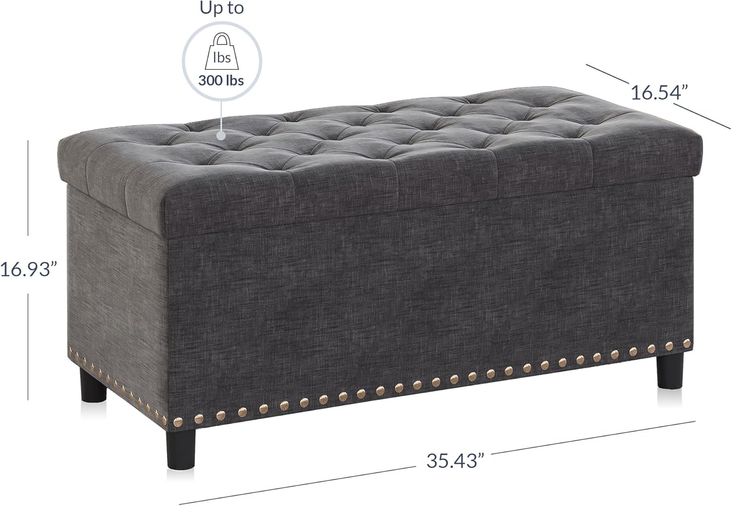 BELLEZE 35" Tufted Ottoman, Storage Bench with Safety Close Hinge, Ottoman with Storage for Living Room, Entryway, Hallway, Foot Rest, Support 300lbs - Dark Grey