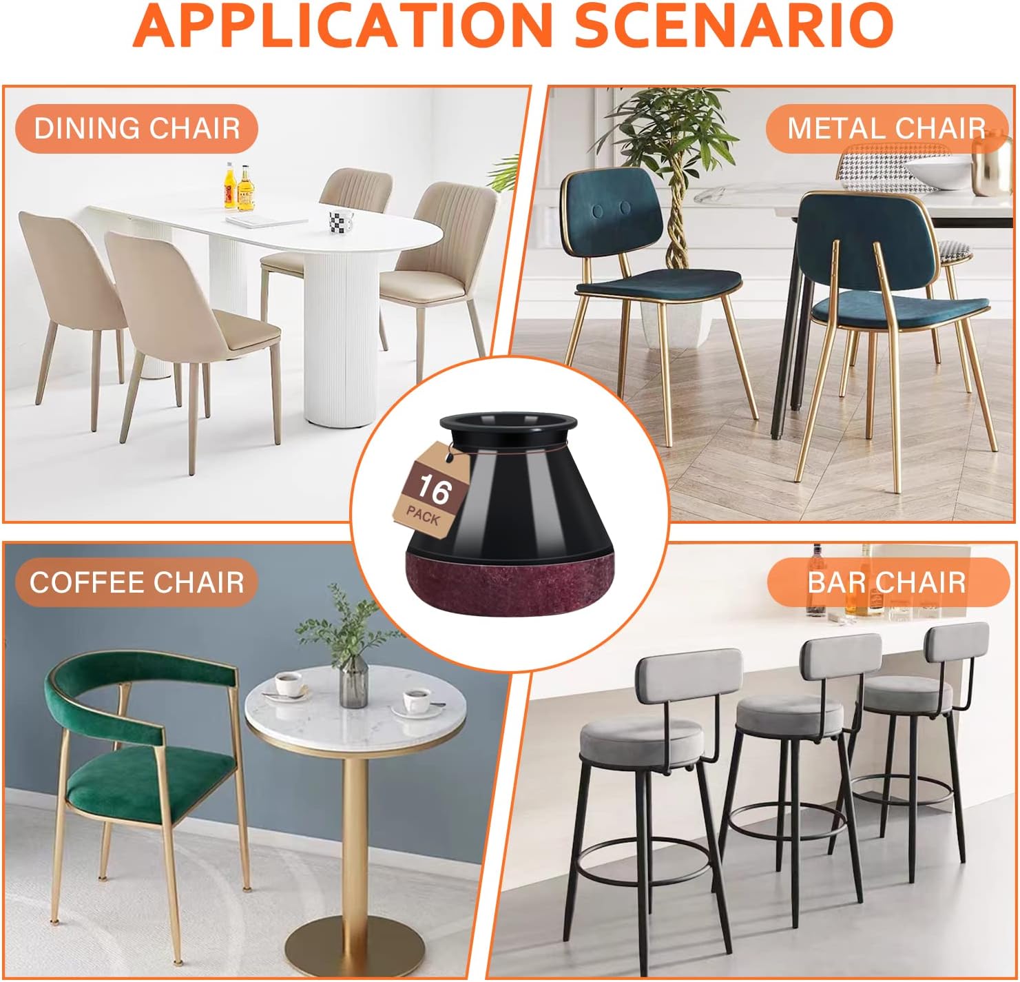 - [Reinforced bottom felt pad]-These chair leg protectors are designed for angled chair legs. The upgraded cup-shaped felt pad grips the chair legs securely. Even when the chair is tilted, it stays stable while protecting your floors from scratches and noise.