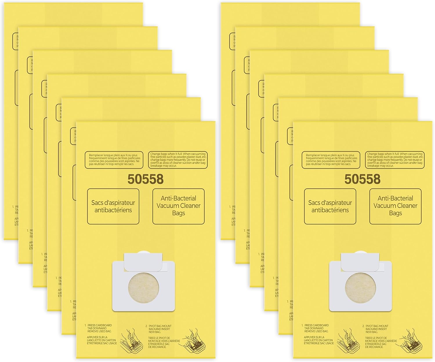 - 𝗖𝗢𝗦𝗧 𝗘𝗙𝗙𝗘𝗖𝗧𝗜𝗩𝗘 𝗚𝗢𝗢𝗗𝗦 - Package includes 12 x 50558 vacuum bags replacement for kenmore. Product Dimension: 14" x 18.7" x 4.7". We recommended you to change the filter bags when 2/3 full, do not reuse oroverfill as a loss of cleaner suction and/or bag breakage may occur