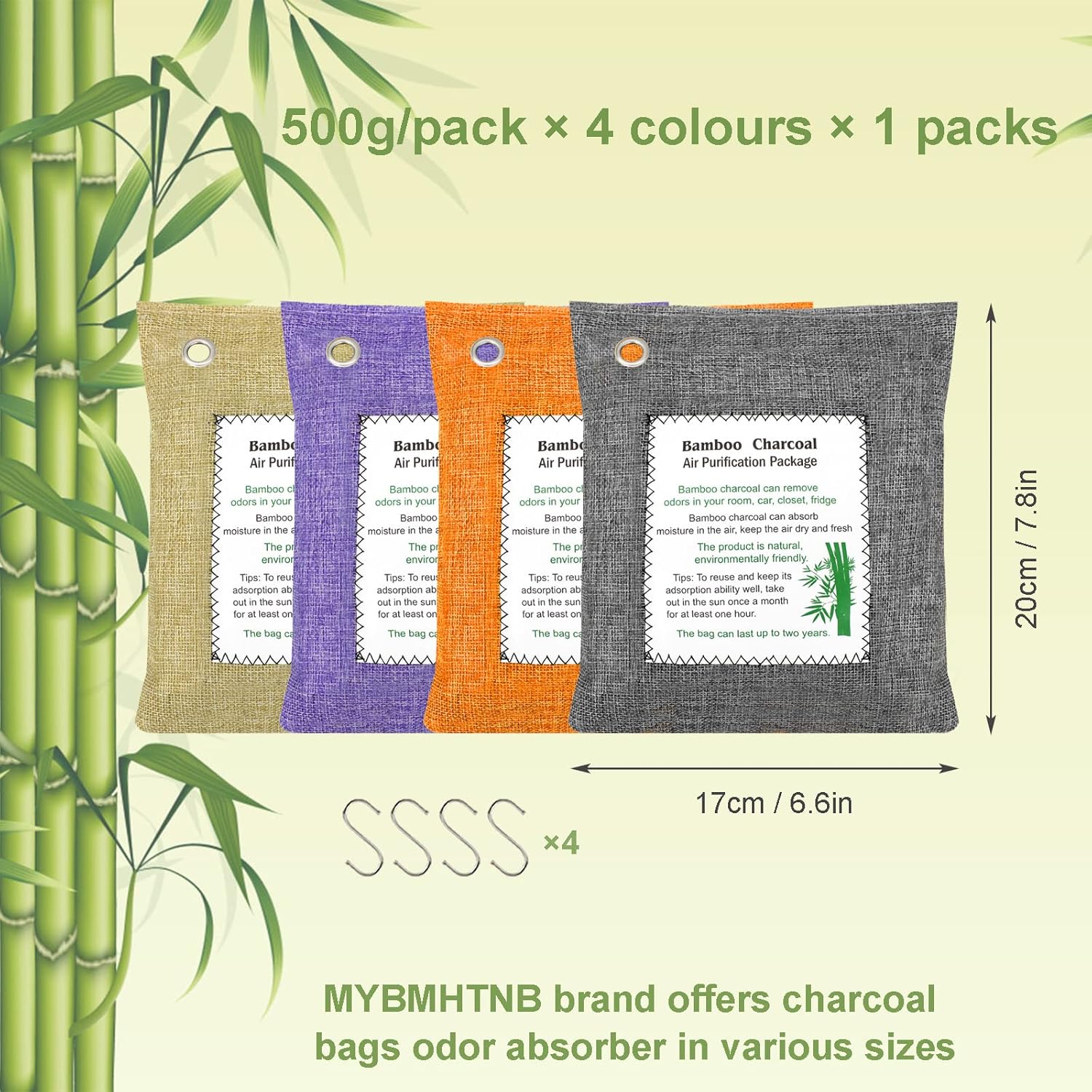 Bamboo Charcoal Bags Odor Absorber 4 Pack×500g Bamboo Charcoal Air Purifying Bags, for Car Air Fresheners, Odor Eliminator for Home,Shoe Deodorizer - Colorful-Activated Charcoal Odor Absorbers