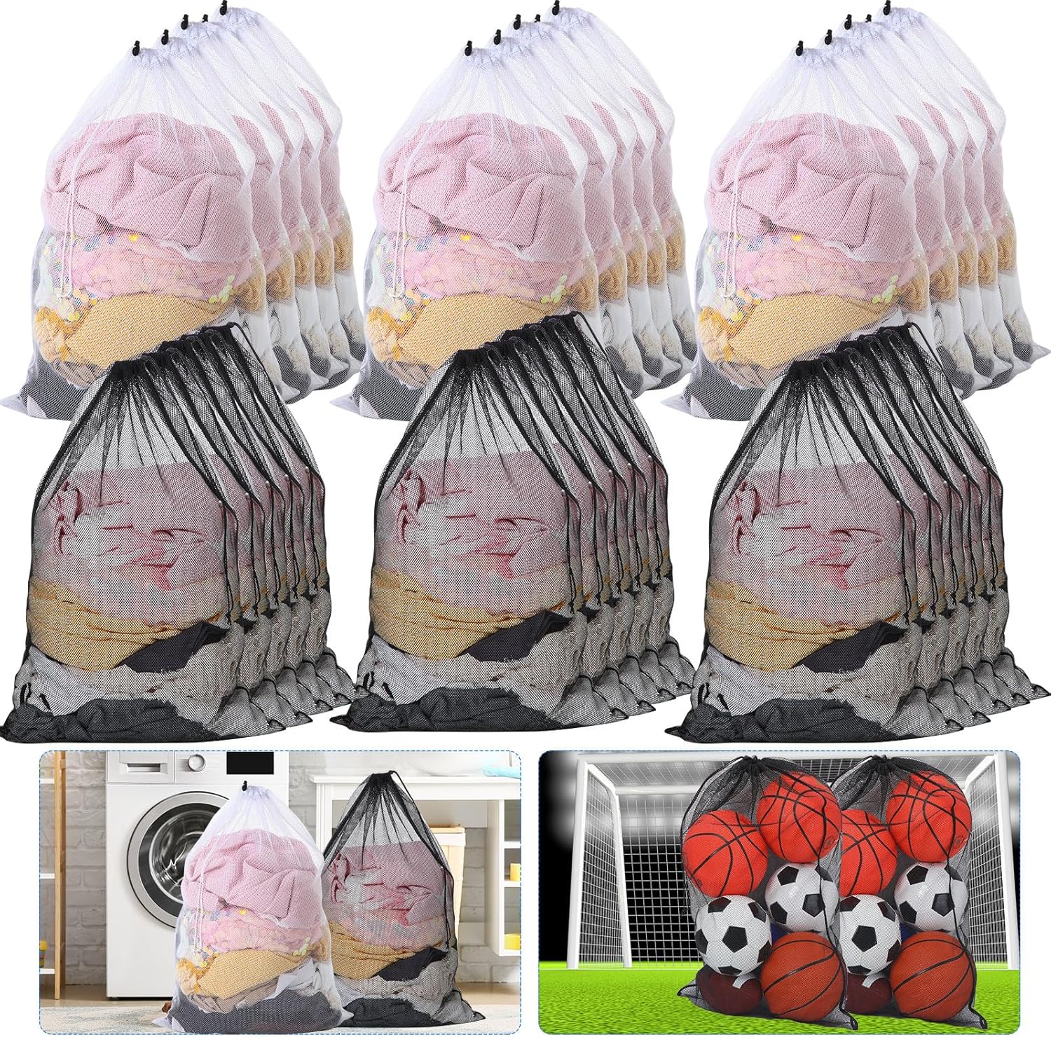 - What You Get: set of 30, 24 x 36 inch, 15 black and white mesh laundry each, nice for camping trips, outdoor trips, college, school dormitories, and apartment dwellers
