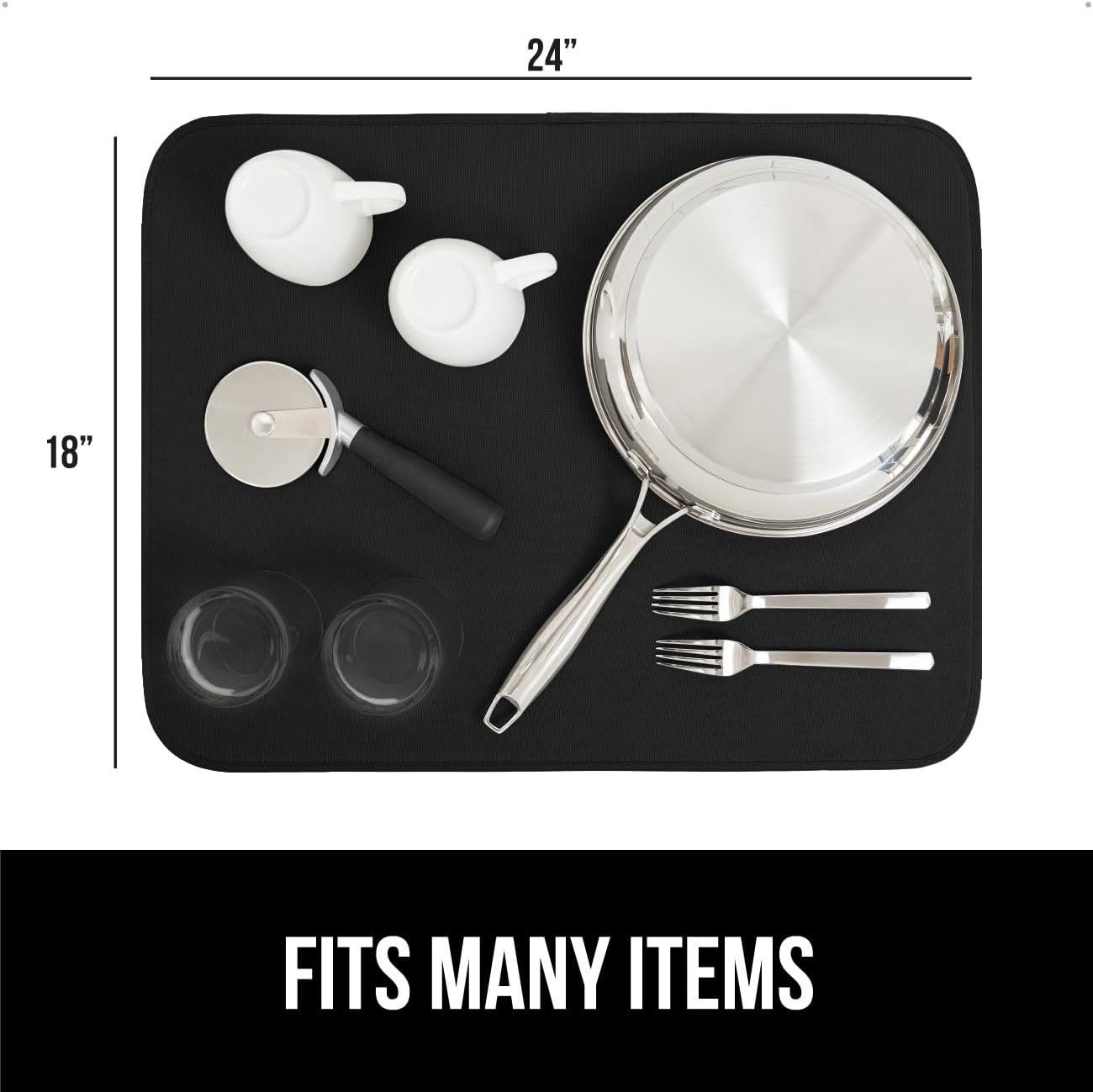 GORILLA GRIP Ultra Water Absorbent Microfiber Dish Drying Mat, 18x24, Quick Dry Thick Mesh, Slip Resistant Pad for Sink Dishes or Under Rack, Kitchen Counter Accessories, Machine Wash Mats, Black