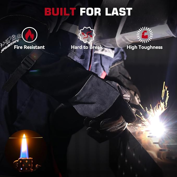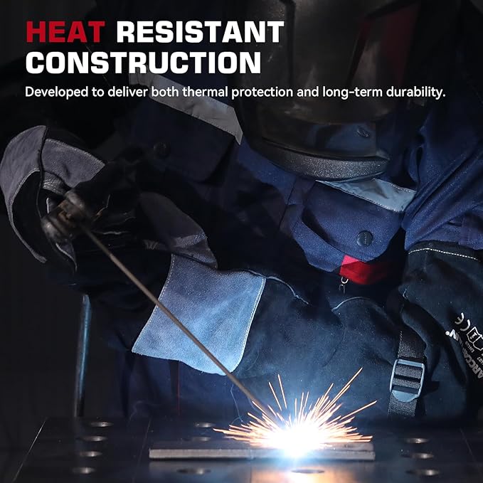- Excellent Heat Resistant: The welding gloves are made of 100% heavy duty flame resistant split cowhide, which offers the strong protection with double reinforced layer padding on palms to withstand temperatures up to 662℉. The design against extreme heat, and ultraviolet and infrared radiation while welding.